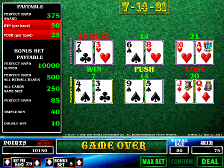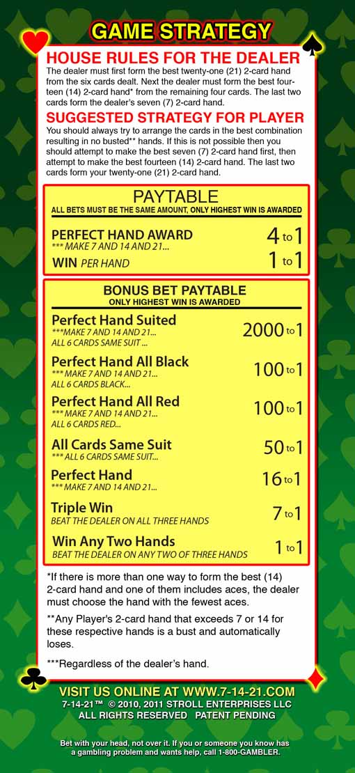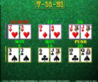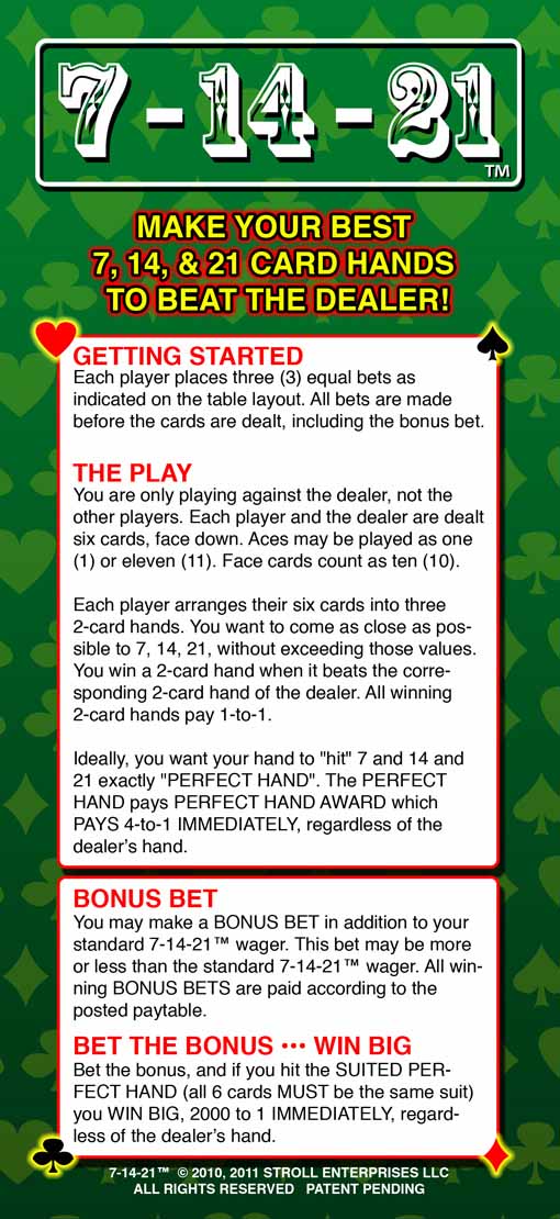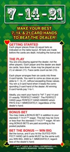 7-14-21 é um jogo de mesa que notei pela primeira vez no Palms, no verão de 2011. Anteriormente, ele era jogado no Grand Biloxi, no final de 2010.