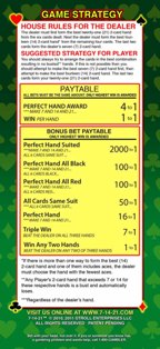 - Caso o jogador consiga uma "mão perfeita", ou seja, exatamente 7, 14 e 21 pontos, ele recebe automaticamente um pagamento de 4 para 1 em todas as três apostas, independentemente das cartas do crupiê.