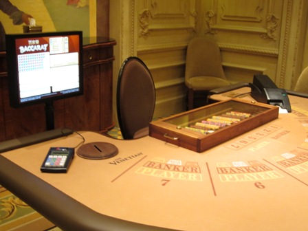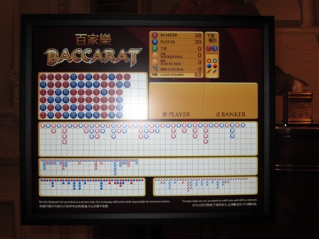 Esta seção acima é chamada de "placa de contas". Antigamente, os jogadores podiam comprar uma bandeja com cubos cujas faces indicavam as vitórias do Jogador, do Banqueiro e do Empate. As vitórias são registradas da seguinte forma: