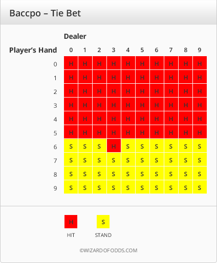 - Em caso de empate de 9 pontos, com o mesmo número de cartas em ambas as mãos, a vantagem será do jogador. Todos os outros empates serão considerados empate.