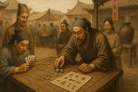 O jogo na China tem uma história que remonta a milhares de anos. Durante as dinastias antigas, as pessoas se reuniam nas ruas, em casas de chá e em mercados, onde jogavam diversos jogos de azar. Cartas, dados e jogos simples semelhantes às loterias de hoje faziam parte do cotidiano .