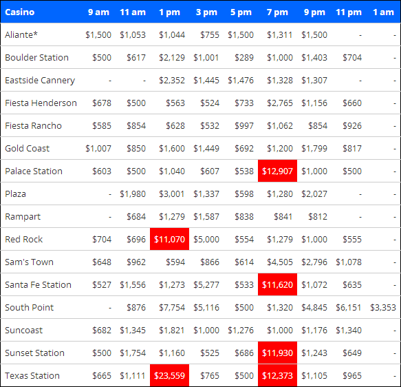 Confira os jackpots do Cash Ball em 12 salas de bingo de Las Vegas, além de outros jogos paralelos progressivos. Atualizado a cada duas horas.
