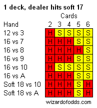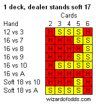 Este apêndice mostra a estratégia dependente da composição quando se usa um único baralho e o dealer para no 17 suave. Até onde sei, o número de cassinos físicos no mundo com essas regras é zero. Em um determinado momento, quando criei esta página, era possível encontrar regras semelhantes em alguns cassinos online.