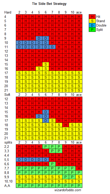 Passei o dia inteiro tentando analisar isso, mas as regras de dobrar e dividir tornaram tudo muito difícil. Então, estou citando abaixo a tabela de pagamentos nº 4 do site do proprietário do jogo, blackjacktie.com , com permissão.