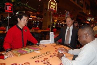 - Caso contrário, se a mão de duas cartas do dealer for melhor ou igual à mão de duas cartas do jogador, e a mão de três cartas do dealer for melhor ou igual à mão de três cartas do jogador, o dealer ganha e o jogador perde sua aposta principal.