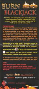 Burn 20 Blackjack é uma variante de blackjack que vi pela primeira vez no Binion's, no centro de Las Vegas, em julho de 2011. O jogo é baseado no blackjack tradicional, com algumas diferenças. A ideia é que o jogador nunca precisa se preocupar em jogar contra um 20 com duas cartas. Para compensar isso, se o dealer estourar com 22 pontos, os jogadores restantes empatam em vez de ganhar.