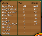 - A aposta paralela de bônus será baseada inteiramente no valor da mão de pôquer do jogador. A tabela de pagamentos é mostrada abaixo.