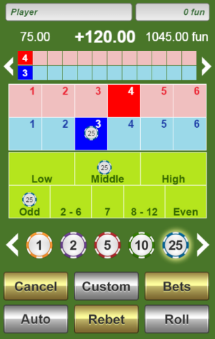 - Baixo — Pelo menos um dado é um ou dois. Paga de 4 a 5.