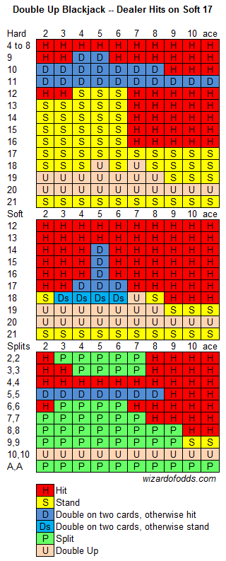 As regras do Double Up Blackjack sofreram algumas alterações, mas acredito que a versão abaixo seja a atual no Reino Unido (atualizada em 24 de setembro de 2017). Atualmente, o jogador pede carta com um 17 suave, enquanto antes o dealer parava. Por favor, não afirme que o blackjack paga 3 para 1, conforme esta fonte , pois afirmo veementemente que essa informação está incorreta.