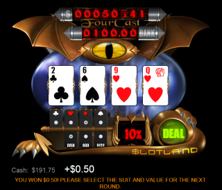 - Se o jogador apostar 20 dólares e acertar todas as quatro previsões, representando todos os quatro naipes, ele ganhará um jackpot progressivo.