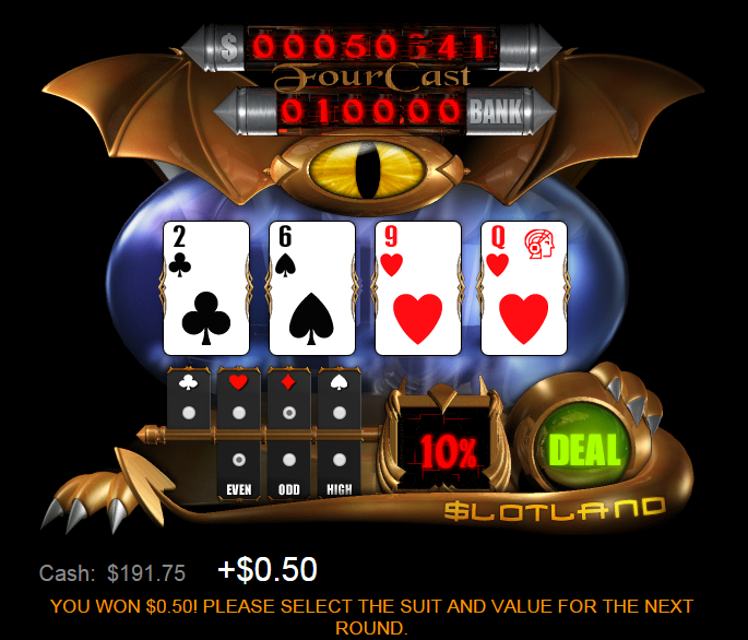 Four Cast é um dos jogos de cassino mais incomuns que já vi. Normalmente não escrevo sobre jogos realmente bizarros, mas Four Cast é jogado nos cassinos online Slotland e Win a Day desde praticamente o início dos jogos de azar online.