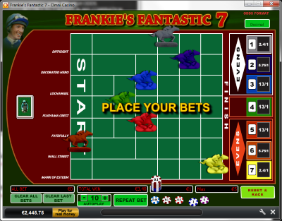 Dizem que Frankie vai para Hollywood, mas você sabia que ele também vai às corridas de cavalo? Não qualquer corrida, mas uma com sete cavalos fantásticos que avançam por terem o melhor desempenho em cada rodada. Alguns ainda têm um caminho a percorrer, mas são recompensados com odds maiores se vencerem.