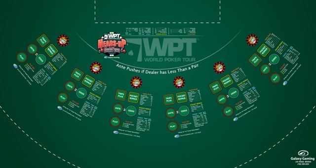 Mão Tabela de Pagamento 1 2 3 4 Straight Flush 500 500 500 500 Quads 50 50 50 25 Casa cheia 10 10 10 6 Descarga 8 6 5 5 Direto 5 5 4 4 Todos os outros Perda Perda Perda Perda - Além disso, existem duas apostas paralelas, que pagam com base apenas nas cartas do jogador: Trips Plus e Pocket Bonus. Essas apostas paralelas serão explicadas após a análise do jogo base.