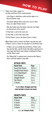 - O jogo começa com o jogador fazendo apostas iguais no Ante e no Hearts. O jogador também pode fazer a aposta paralela Attack neste momento.