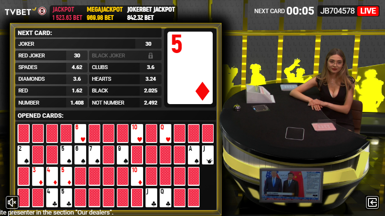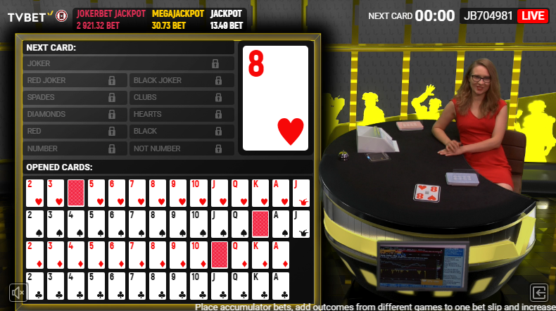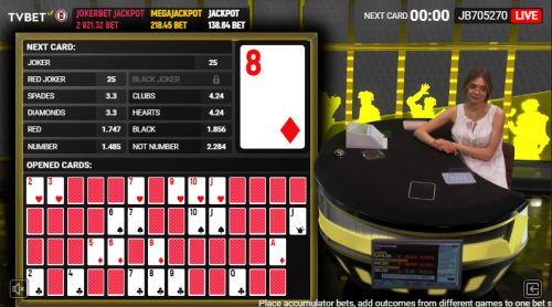 Joker Bet é um jogo de azar que utiliza um baralho de 54 cartas, uma carta por vez. Antes de cada carta, o jogador pode fazer diversas apostas, como a carta exata, a cor, o naipe e o valor. O jogo está disponível na TvBet , fornecedora de jogos com crupiê ao vivo para cassinos online.