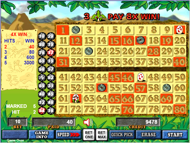 - O jogador ganhará dependendo, em parte, da quantidade de números escolhidos por ele que coincidirem com os 20 números selecionados pelo computador, como no keno tradicional.