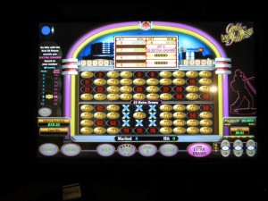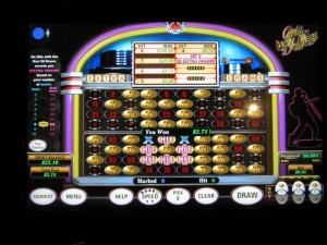 A imagem à direita mostra que, das 22 bolas extras, seis foram acertos, pagando US$ 2,75. Considerando que minha aposta original era de US$ 0,05, isso me rendeu 55 para 1.