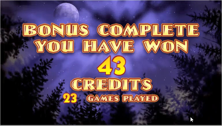 Na imagem acima, escolhi os números de 11 a 15 como meus Pontos de Bônus. O sorteio do jogo acertou quatro deles, como evidenciado pela marcação com um lobo uivando para a lua cheia.