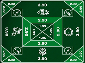 - O jogo utiliza uma roleta com quatro lados. Em cada lado, há um caranguejo-rei, um camarão, uma flor e um peixe. Os jogadores apostam em qual deles ficará para cima após a roleta.
