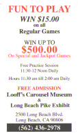 Gostei muito da minha visita ao Looff's. Com uma vantagem da casa de cerca de 25%, não foi a melhor aposta que já fiz em termos percentuais. No entanto, a US$ 1 por jogo, considero isso mais uma forma de entretenimento do que de jogo de azar. Supondo um jogo a cada dois minutos, o custo do entretenimento seria em média de US$ 7,50 por hora, dependendo do número de jogadores. Se você mora em Long Beach ou perto e gosta de um bom jogo para passar o tempo, recomendo muito o Looff's. Para quem estiver visitando a região de Los Angeles, o Looff's fica a alguns quarteirões ao sul da rodovia 405, na saída para Long Beach Boulevard, no lado leste da rua. Com certeza, eu jogaria no Looff's em vez de uma máquina caça-níqueis, sem dúvida.Links