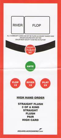 O Pocket Poker é uma aposta paralela opcional que paga se as duas cartas da mão do jogador forem um par, uma sequência ou uma sequência de flush. Mesmo que o jogador desista (fold), ele ainda pode ganhar a aposta Pocket Poker. A tabela abaixo mostra a tabela de pagamentos da aposta e a probabilidade de receber cada mão vencedora. A célula inferior direita mostra a vantagem da casa de 2,41%.