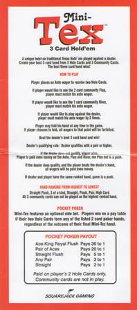 Mini-Tex é um jogo de pôquer no estilo Texas Hold'em jogado contra o dealer. O objetivo do jogo é vencer tendo uma mão de pôquer de três cartas melhor que a do dealer, usando duas cartas fechadas e três cartas comunitárias.