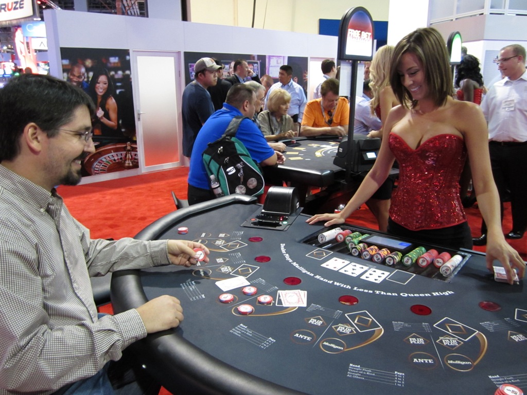 A tabela a seguir mostra a probabilidade e o retorno para todos os resultados possíveis da aposta Ante no Three Card Mulligan. A célula inferior direita mostra uma vantagem da casa de 3,57%.