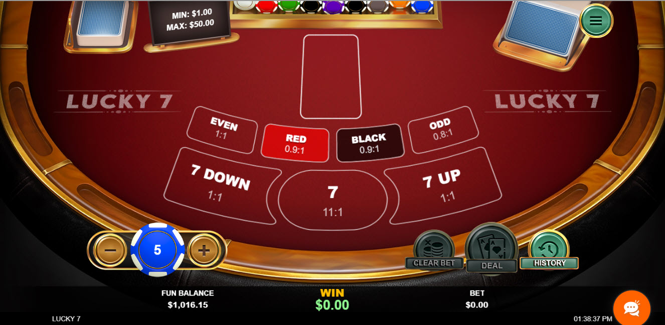 Notei o jogo Lucky 7 no cassino Slotastic em junho de 2025. É um jogo simples baseado em apostas no sorteio de uma única carta.