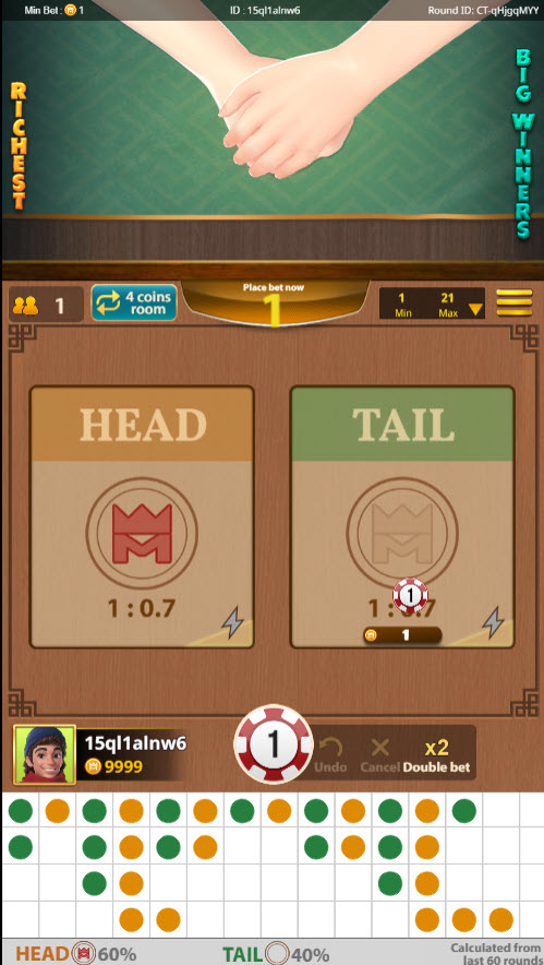 Cara ou Coroa é um jogo simples baseado no lançamento de uma ou quatro moedas. O jogo foi criado pela KingMidas.