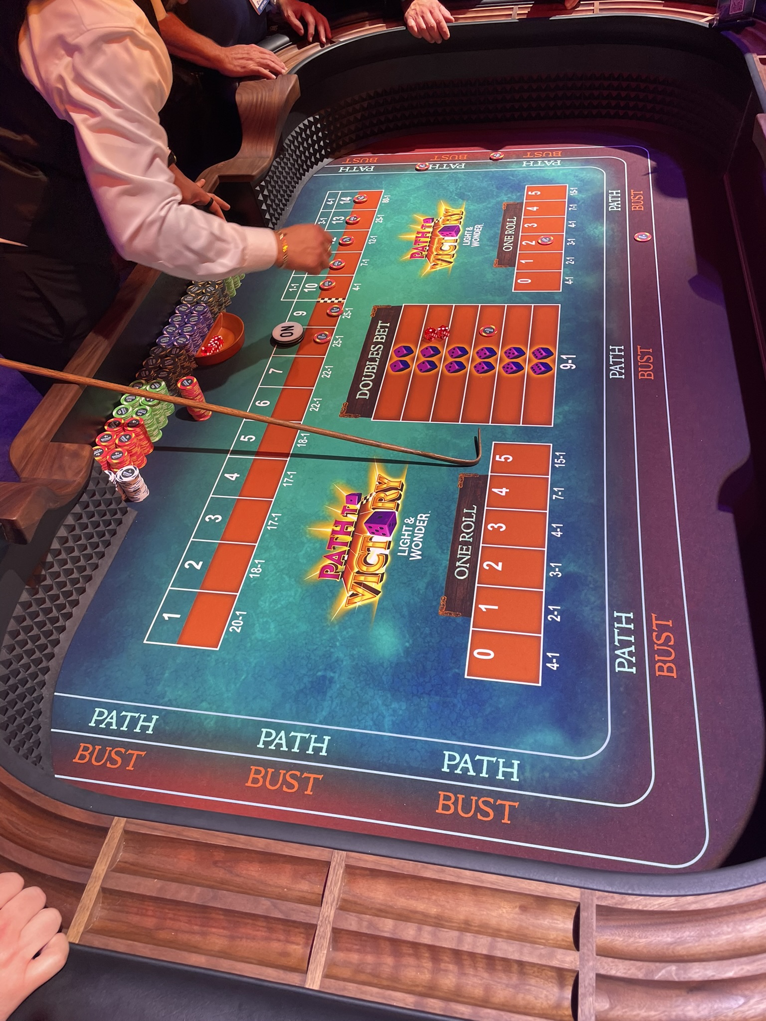Path to Victory é um jogo de dados único que notei no estande da Light & Wonder na Global Gaming Expo 2025. É difícil compará-lo a qualquer outro jogo, então, por favor, consulte as regras para saber como jogar.