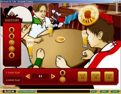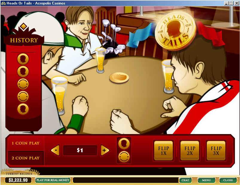 O jogador escolhe cara ou coroa e então aposta em 1, 2 ou 3 lançamentos.