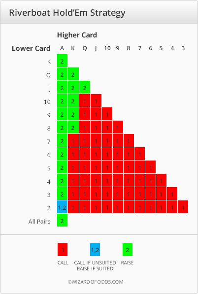 Riverboat Hold'em Poker é um jogo de mesa baseado em pôquer, encontrado no Mississippi e em Indiana. Normalmente, eu mesmo faço todas as minhas análises para este site. No entanto, neste caso específico, os cálculos são de Stanley Ko. O proprietário do jogo me forneceu o relatório de Stanley, com permissão para publicá-lo neste site. Posso apenas garantir, de forma independente, as tabelas de apostas do River.