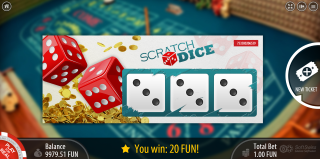 Scratch Dice é um jogo simples oferecido pelo software SOFTSWISS. Há apenas uma aposta que paga com base no lançamento de três dados. O resultado é revelado como em um jogo de raspadinha.