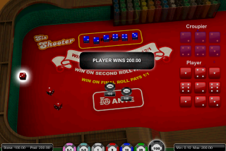 O terceiro lançamento do jogador resulta em 1-2-3. O um e o dois não ajudam, mas o três elimina os três últimos dos Dados Alvo. Com o objetivo alcançado em três lançamentos, a aposta do jogador é paga em 1 para 1.