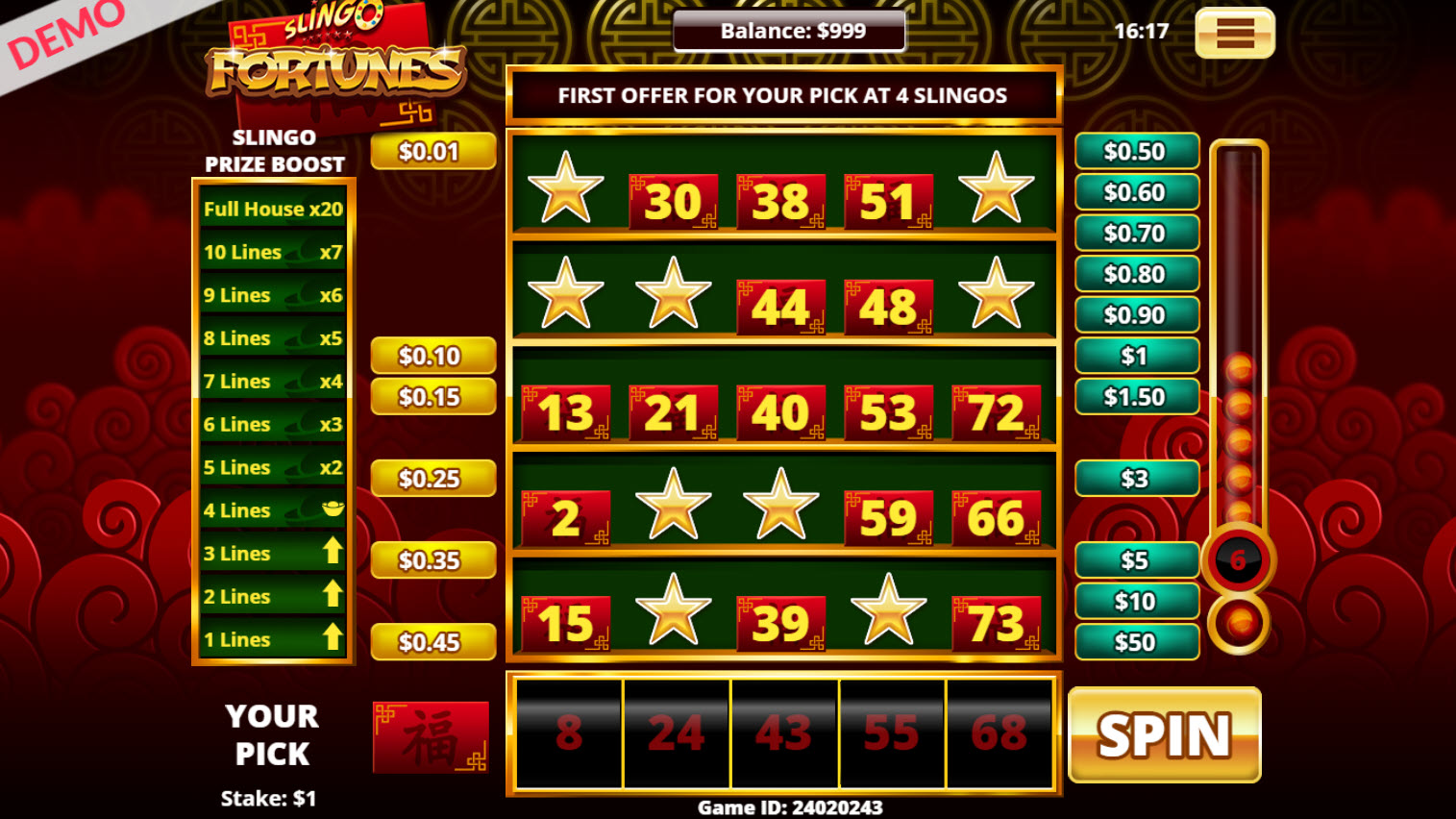 Slingo Fortunes parece ser exatamente o mesmo jogo, mas com um tema asiático.