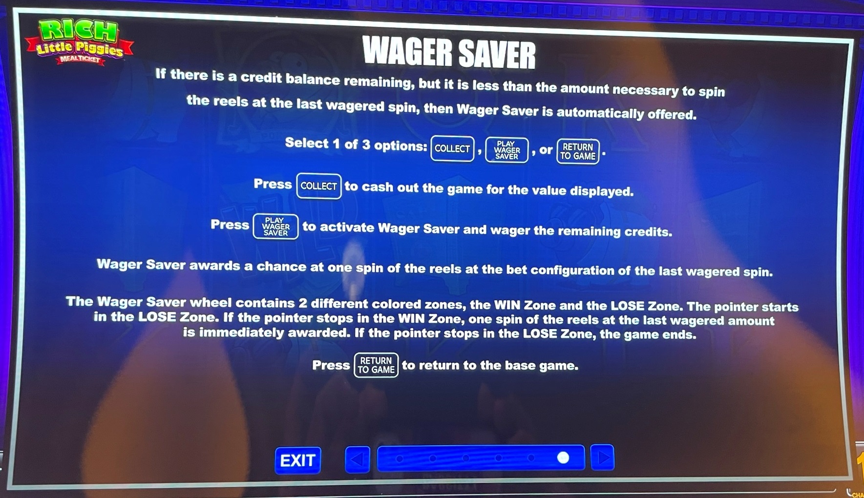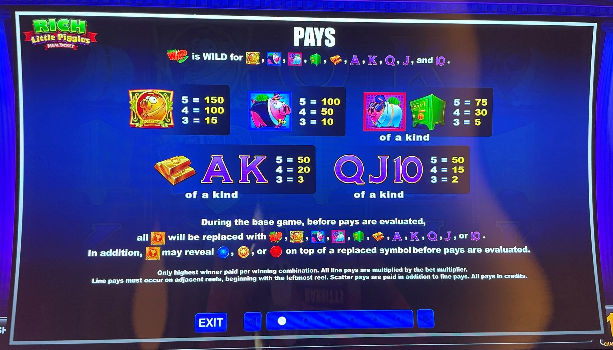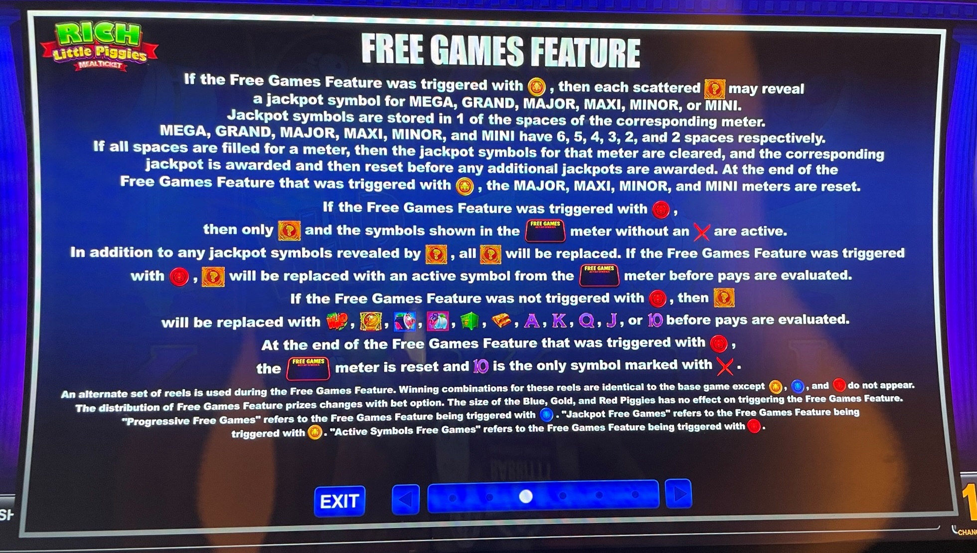 Rich Little Piggies é mais uma máquina caça-níqueis com estado variável que pode oferecer vantagem ao jogador em algumas situações. A essência do jogo é que moedas são encontradas conforme o jogador joga. Essas moedas às vezes caem em um dos três cofrinhos. Conforme isso acontece, o valor é adicionado a um jogo bônus associado àquela cor de cofrinho. Você também pode ver os cofrinhos aumentarem de tamanho à medida que mais moedas são adicionadas. Às vezes, uma moeda ativa o bônus associado àquele cofrinho. Se os porquinhos engordarem o suficiente, especialmente o azul, o jogo pode oferecer vantagem ao jogador. As opiniões sobre este jogo variam, então leve meu conselho com muita cautela.