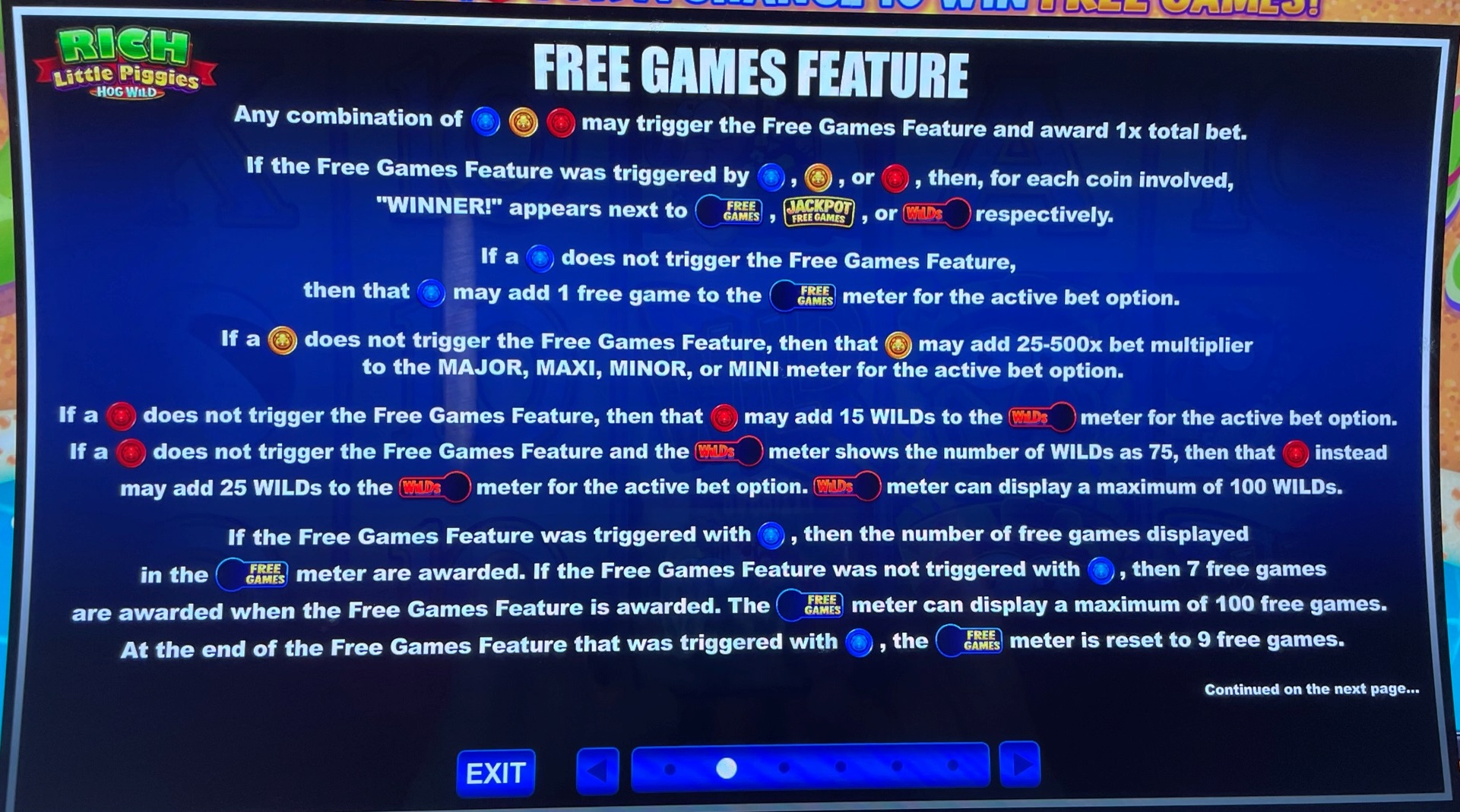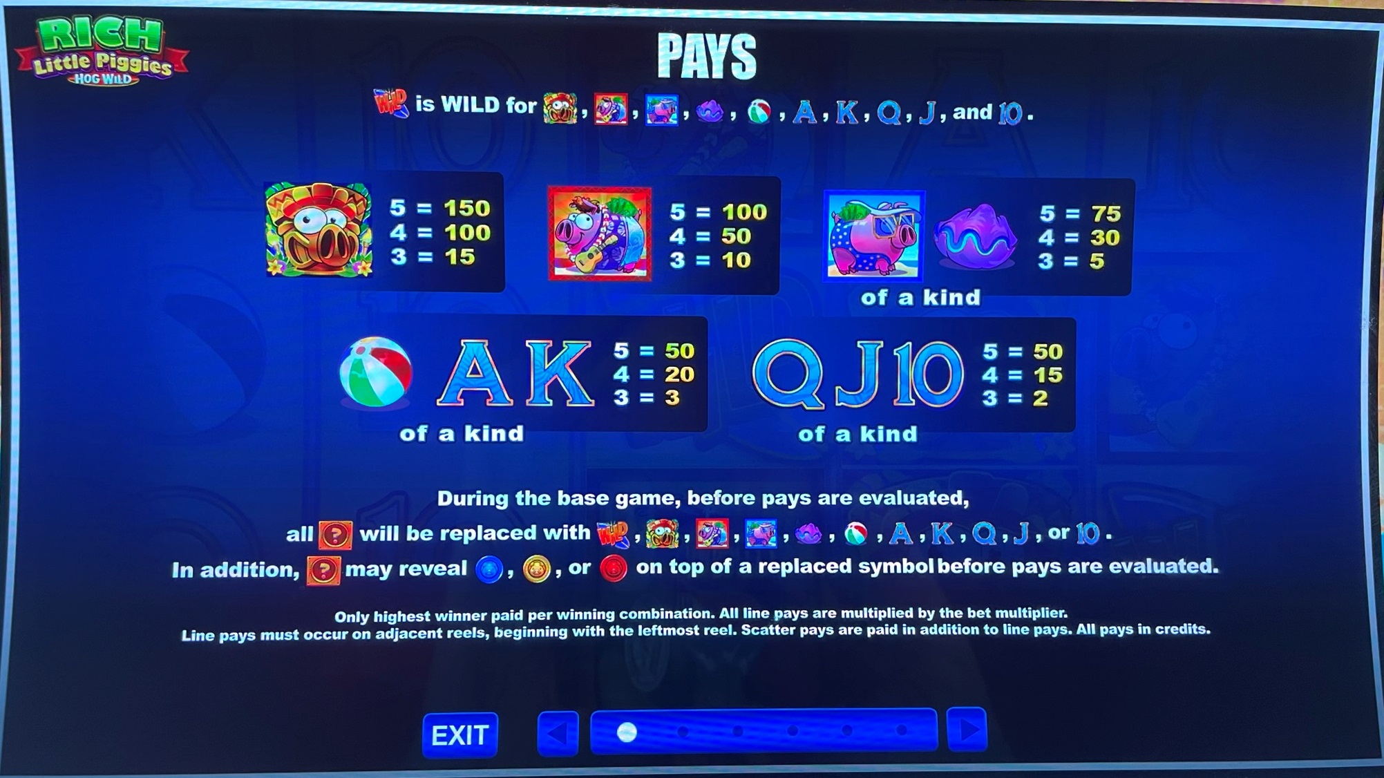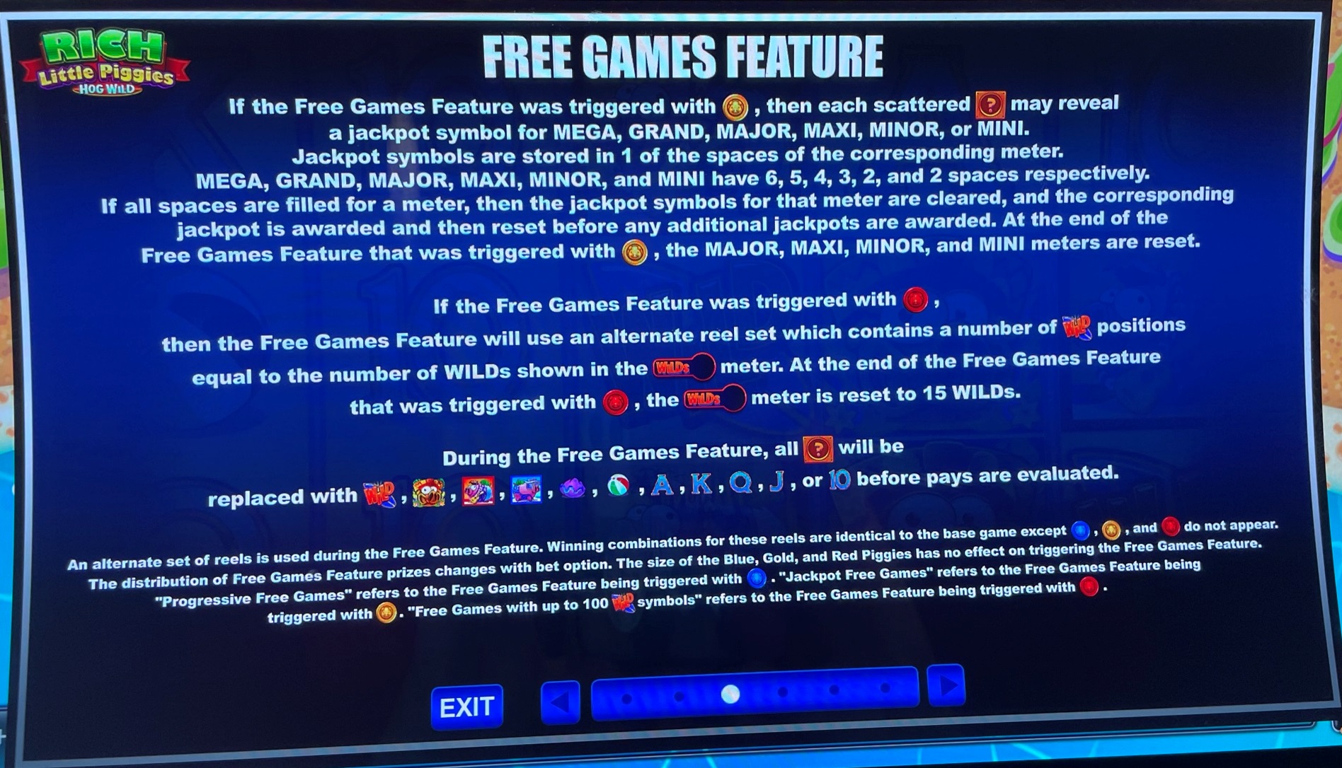 As regras da versão Hog Wild de Rich Little Piggies parecem ser as mesmas da versão Meal Ticket, com exceção do bônus Vermelho. A seguir, estão as regras do bônus Vermelho na versão Meal Ticket.