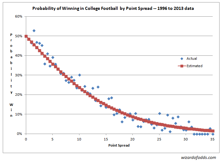 Devo também esclarecer que havia apenas 1.780 jogos nos meus dados que apresentavam uma variação dentro da faixa de apostas do teaser do Wong. A probabilidade de 71,57% que mostro para um teaser do Wong vencer deve ser considerada bastante aproximada, com um desvio padrão de 1,70%. Outras pesquisas me levam a crer que a probabilidade de um teaser do Wong vencer em qualquer partida específica seja mais próxima de 68,9%.