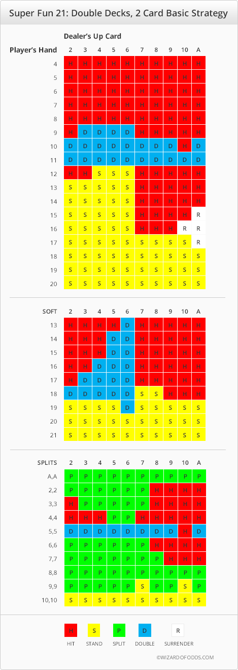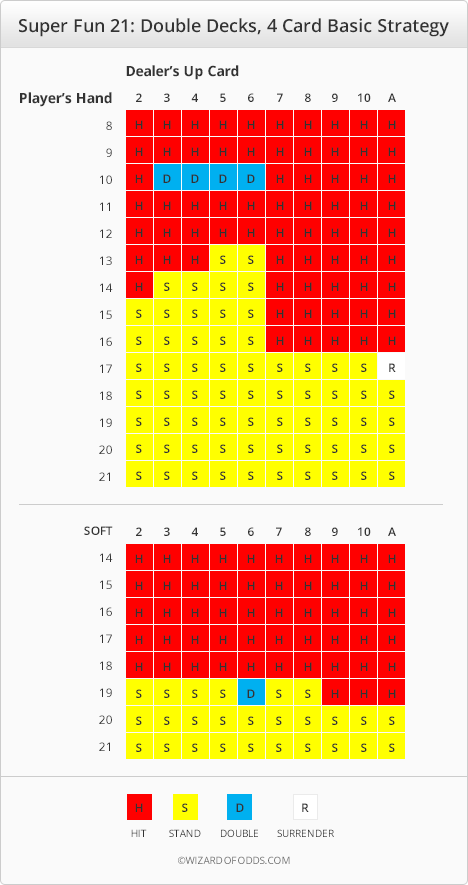 Super Fun 21 é uma variação de blackjack encontrada em muitos cassinos de Las Vegas. Possui muitas regras flexíveis, compensadas pelo fato de a maioria das cartas de blackjack pagarem apenas o valor apostado (ou a aposta).