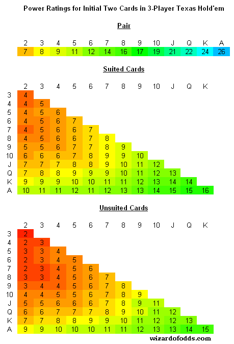Classificação de poder para três jogadores no Texas Hold'em