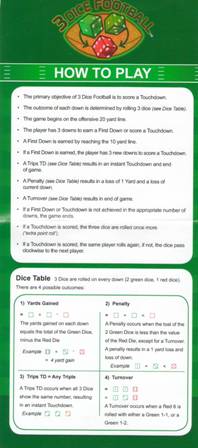 - Se o jogador tirar um 6 vermelho e a soma dos dados verdes for 2 ou 3, isso resultará em uma perda de posse de bola, que é uma tentativa frustrada de marcar um touchdown.