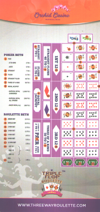 - Todas as apostas de pôquer serão pagas com base na carta usada para as apostas na roleta, bem como nas duas cartas seguintes do baralho.