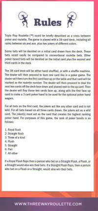 A Roleta Triple Flop é um híbrido entre pôquer e roleta. Foi criada para mercados como a Califórnia e Oklahoma, onde a roleta tradicional é ilegal. No entanto, encontrou espaço no cassino Orchid, em Aruba.