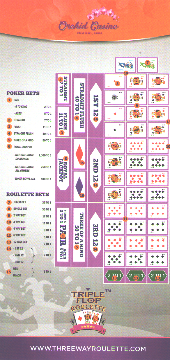 A Roleta Triple Flop é um híbrido entre pôquer e roleta. Foi criada para mercados como a Califórnia e Oklahoma, onde a roleta tradicional é ilegal. No entanto, encontrou espaço no cassino Orchid, em Aruba.