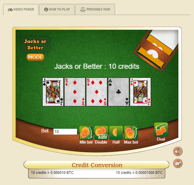Para os propósitos desta página, estou analisando o Crypto.Games, por enquanto. Eles têm três versões de video poker, como segue: