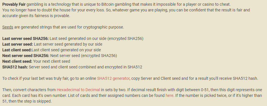Na captura de tela acima, voltei à seção "Jogo Justo" para observar como o cassino utiliza as duas Sementes para obter as cartas reais vistas no jogo.
