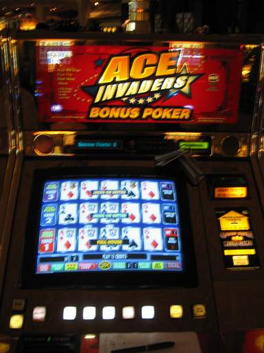 Ace Invaders é uma variação de vídeo pôquer em que o jogador pode jogar três linhas e a gravidade puxa para baixo quaisquer ases que ajudem a mão imediatamente abaixo. O jogo pode ser encontrado em vários cassinos de Las Vegas. Sei que o Treasure Island tem o jogo, que segue a tabela de pagamento D.