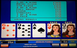 Por fim, gostaria de enfatizar que o American Poker foi manipulado para se adequar às leis de jogos alemãs , que estabelecem limites máximos de ganhos e perdas por hora de jogo. Não sei exatamente como os jogos, desenvolvidos pela Novomatic, são programados. A análise nesta página assume incorretamente que cada carta é independente e tem as mesmas chances. A grande vantagem para o jogador, de cerca de 40% por aposta inicial, também deve ser considerada uma evidência de que os jogos são manipulados contra o jogador.
