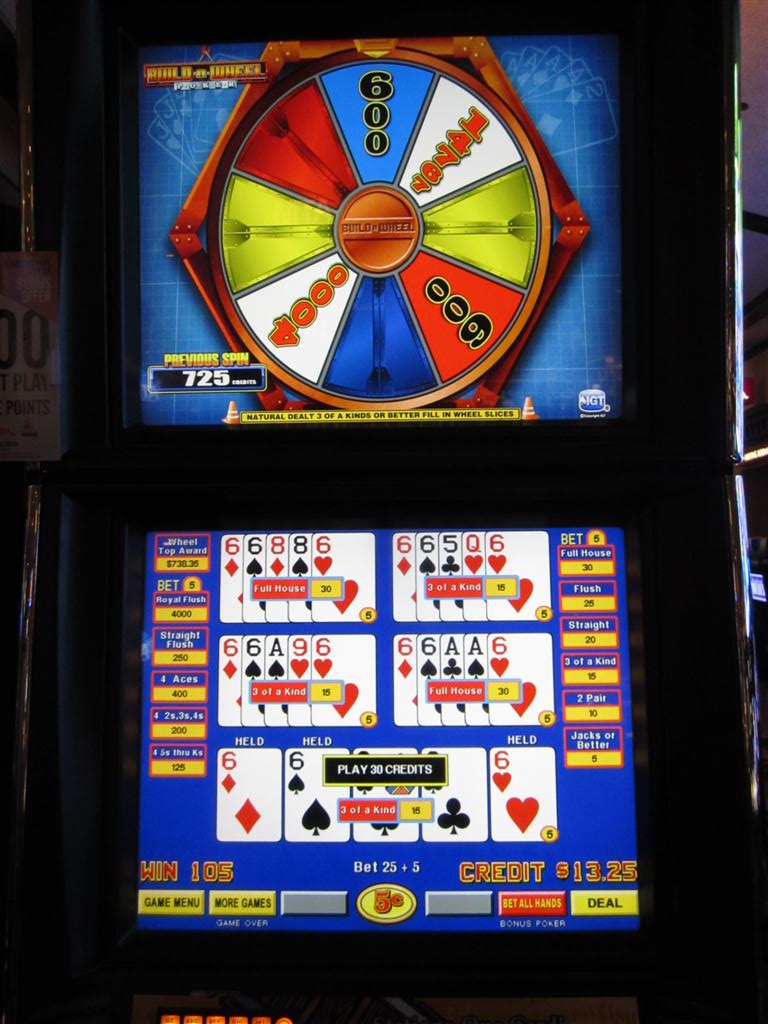 Build a Wheel é uma variação de video poker que vi pela primeira vez nos cassinos Red Rock e Palace Station em dezembro de 2011. Assim como no Wheel Poker , o jogador pode girar uma roda da sorte ocasionalmente se fizer uma aposta adicional. Diferentemente de outros jogos de roda da sorte, porém, em Build a Wheel o jogador preenche os espaços da roda sempre que recebe uma trinca ou uma mão melhor. Quando a roda estiver completa, o jogador pode girá-la.Regras
