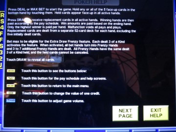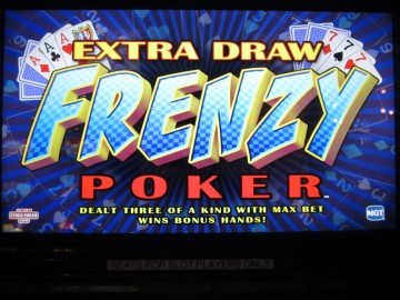 Extra Draw Frenzy é uma variante de vídeo pôquer que notei pela primeira vez no cassino Fremont, em Las Vegas, no dia 7 de dezembro de 2013. A ideia principal do jogo é que, se o jogador receber uma trinca, ele ganha de 3 a 7 mãos extras na rodada de descarte. O jogo é baseado em versões de vídeo pôquer de três, cinco e dez jogadas. O jogador precisa apostar um crédito extra por mão para ativar o recurso Extra Draw.